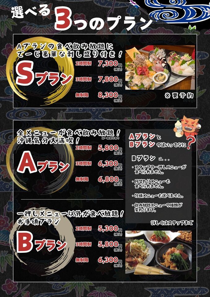 ※AプランとBプランとではご注文可能なお料理やお飲み物が異なります。(詳しくはお電話やLINEにてお問い合わせください。)